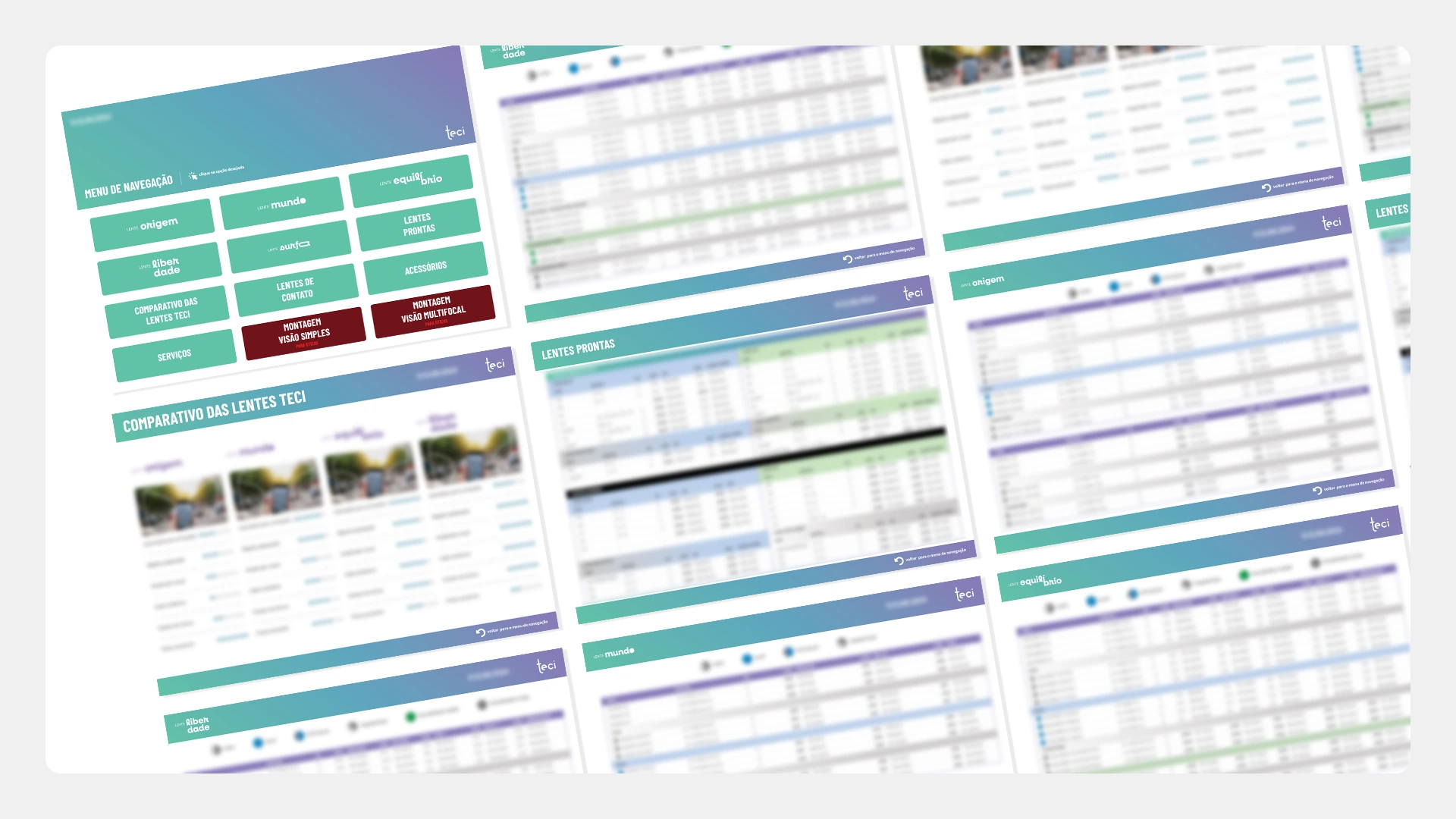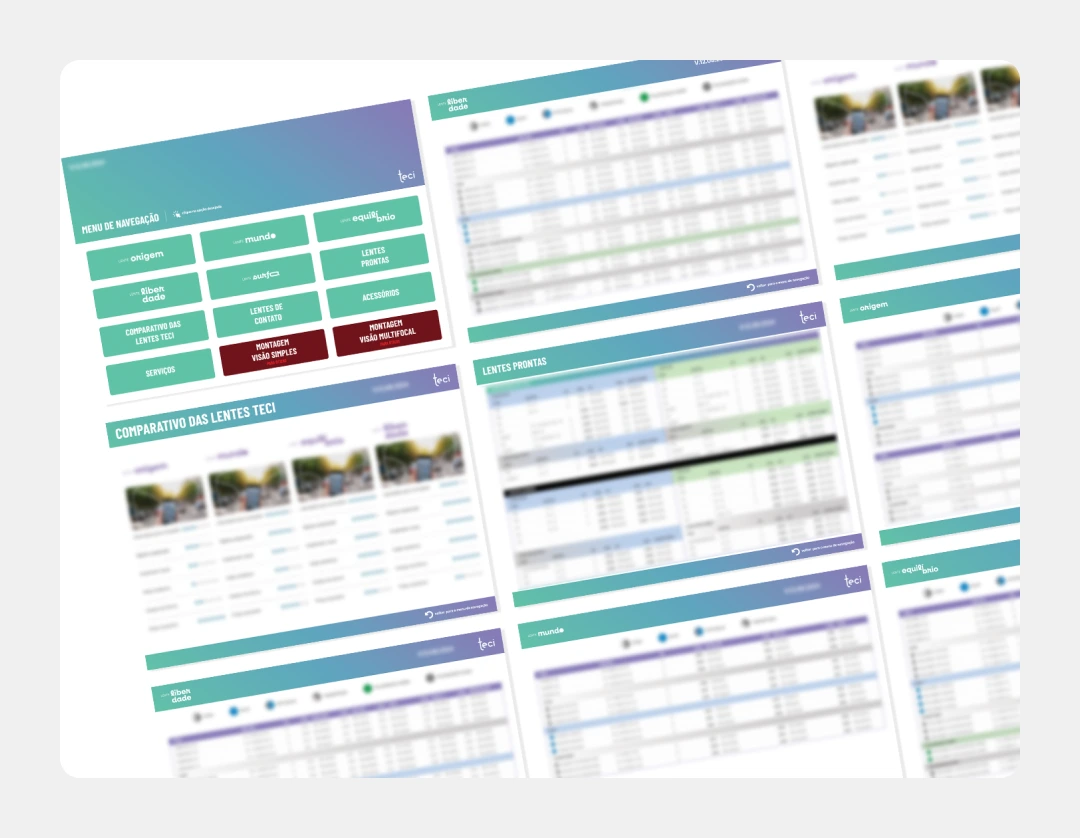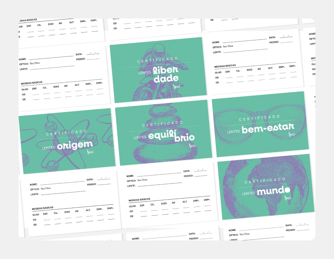 Criamos um sistema de marca exclusivo para as diferentes linhas de lentes da Teci, mantendo a consistência visual entre todas elas, veja abaixo o resultado que obtivemos: